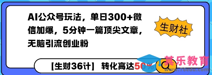 作者:视频教程网,原文地址:AI公众号玩法,单日300 微信加爆,5分钟一篇顶尖文章无脑引流创业粉发布于2026-01-03 04:51:54