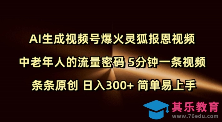 Ai生成视频号爆火灵狐报恩视频 中老年人的流量密码 5分钟一条视频 条条原创 日入300 简单易上手