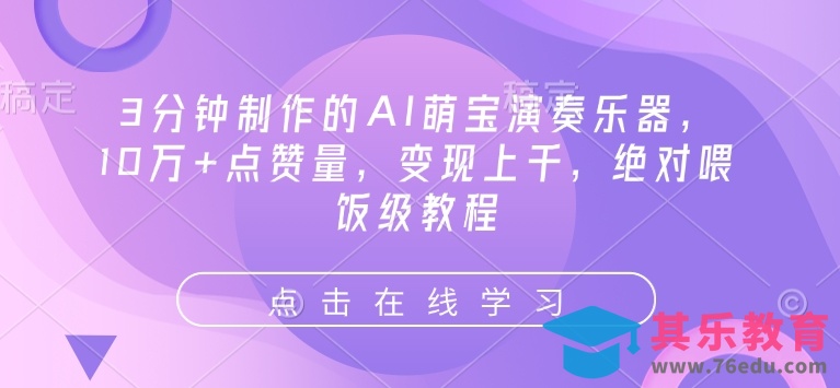 3分钟制作的AI萌宝演奏乐器,10万 点赞量,变现上千,绝对喂饭级教程