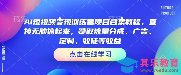 AI短视频变现训练营项目合集教程,直接无脑搞起来,赚取流量分成、广告、定制、收徒等收益