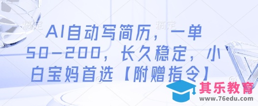 AI自动写简历,一单50-200,长久稳定,小白宝妈首选【附赠指令】