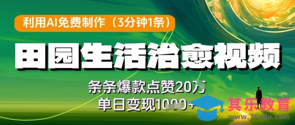 利用AI免费制作田园生活治愈视频,条条爆款点赞20W,单日变现几张