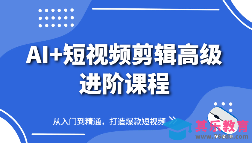 这是一套“AI 短视频剪辑”高级进阶课程。涵盖AI工具从简介到实操,如用DeepSeek生成关键词、AI制作婚纱照片等;剪映基础操作与案例制作,像抠像、调色、关键帧运用,以及古风美景、萌娃特效等热门视频打造;还有账号运营、直播技巧,橱窗商品添加等内容。助力学员从入门到精通,打造爆款短视频。