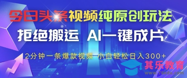 今日头条视频纯原创玩法,拒绝搬运,AI一键成片, 2分钟一条爆款视频,小白也能轻松日入3张 【揭秘】