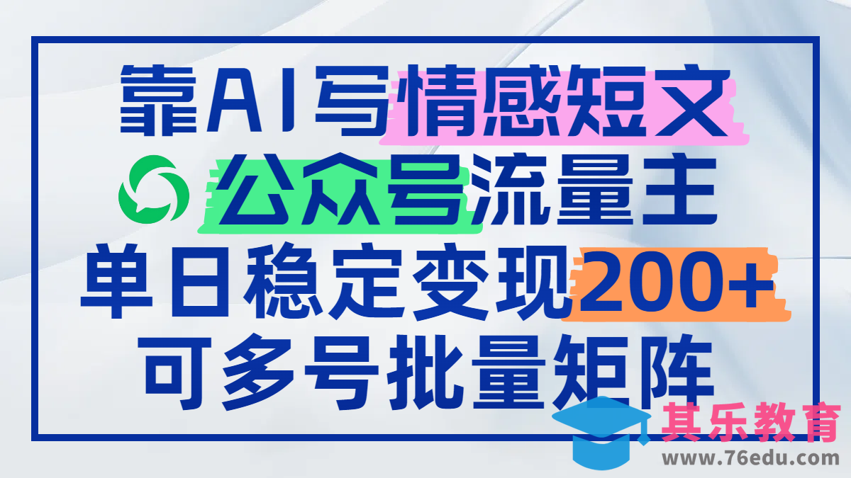 随着移动互联网发展,情感共鸣类内容需求持续攀升。如今,借助先进的 AI 技术,普通人也能轻松产出优质情感短文。此项目零专业技能要求,哪怕你毫无写作功底,只要会打字、能复制粘贴,就能立即上手。创作一篇情感短文,从构思到发布平均仅需15-20分钟,每天投入1小时,批量矩阵运营公众号不在话下 。