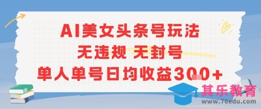 AI美女头条号玩法无违规无封号单人单号日均收益3张