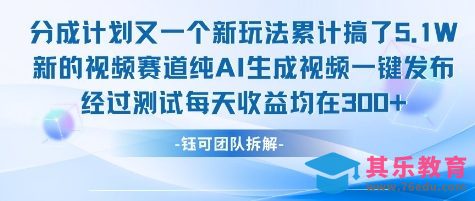 分成计划又一个新玩法累计搞了5W 新的视频赛道纯AI生成视频一键发布经过测试每天收益均在300
