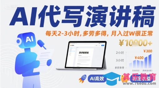 AI代写演讲稿,每天2-3小时,多劳多得,月入过W很正常
