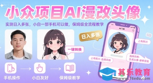小众项目AI漫改头像,实测日入多张,小白一部手机可以做,保姆级全流程教学