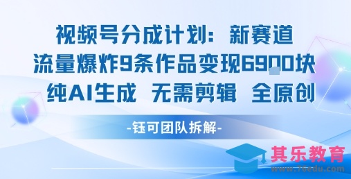 视频号新玩法 9条作品变现6.9k 纯AI生成无需剪辑全原创