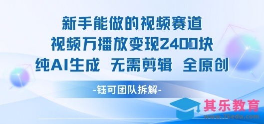 新手能做的视频赛道 万播放变现2.4k 纯AI生成无需剪辑全原创