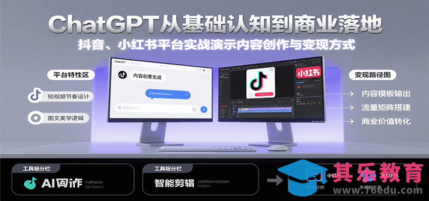 本课程系统构建ChatGPT从基础认知到商业变现的全方位能力,首先解析ChatGPT的技术原理、发展历程及国内外版本差异,接着深入讲解6条顶级Prompt的情感化表达和逻辑增强技巧,然后结合抖音、小红书等平台实战演示内容创作与变现路径,最后延伸至GPT4插件管理等进阶技能,形成”认知-技巧-应用-进阶”的完整学习闭环。
