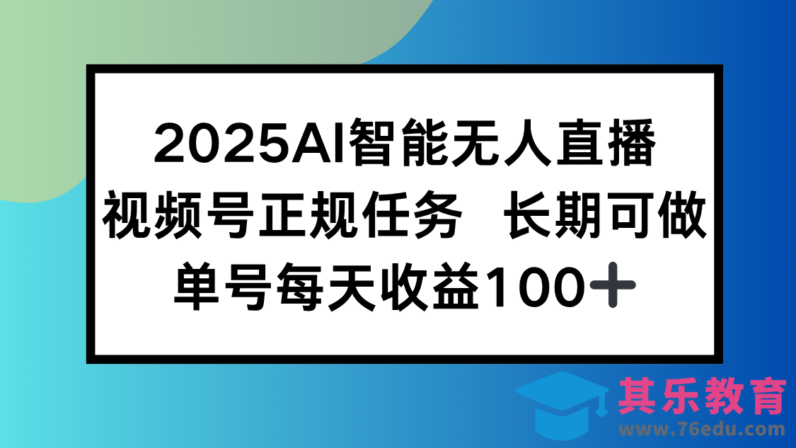 作者:视频教程网,原文地址:2025AI智能无人直播新玩法,视频号长期稳定任务,单日平均收益100发布于2025-01-16 19:54:23