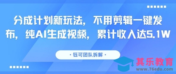 分成计划新玩法,不用剪辑一键发布,纯AI生成视频,累计收入达5.1W