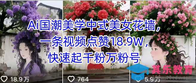 作者:视频教程网,原文地址:Ai国潮美学中式美女花墙,一条视频点赞18.9W,快速起千粉万粉号发布于2024-07-17 23:15:19