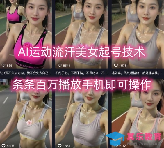 AI运动流汗美女起号技术,条条百W播放手机即可操作
