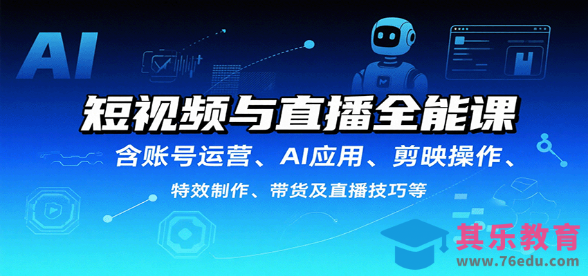《AI实操课0基础到精通》是一门系统化短视频创作与变现的全链路课程,涵盖从账号搭建到商业变现的完整知识体系。课程以AI工具应用(文案生成、数字人制作)、剪辑技术(剪映全功能教学)、创意特效(150 热门特效教程)为核心,配套账号运营(起号涨粉)、带货直播(选品技巧)等模块,结合2025年最新平台规则,帮助学员快速掌握短视频创作的核心技能并实现流量变现。