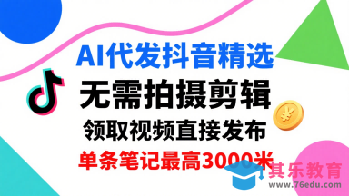 AI代发抖音精选,领取视频直接发布,单号每天领取3条,单条笔记最高3k,无需拍摄剪辑,懒人福利