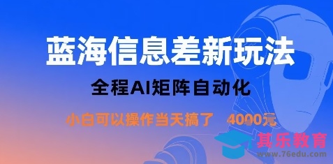 蓝海信息差新玩法,全程AI矩阵自动化小白可以操作当天搞了1k