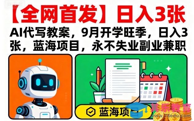 【全网首发】AI代写教案,9月开学旺季,日入3张,蓝海项目,永不失业副业兼职