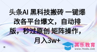 头条AI 黑科技搬砖 一键爆改各平台爆文,自动排版,秒过原创 矩阵操作,月入3w 【揭秘】