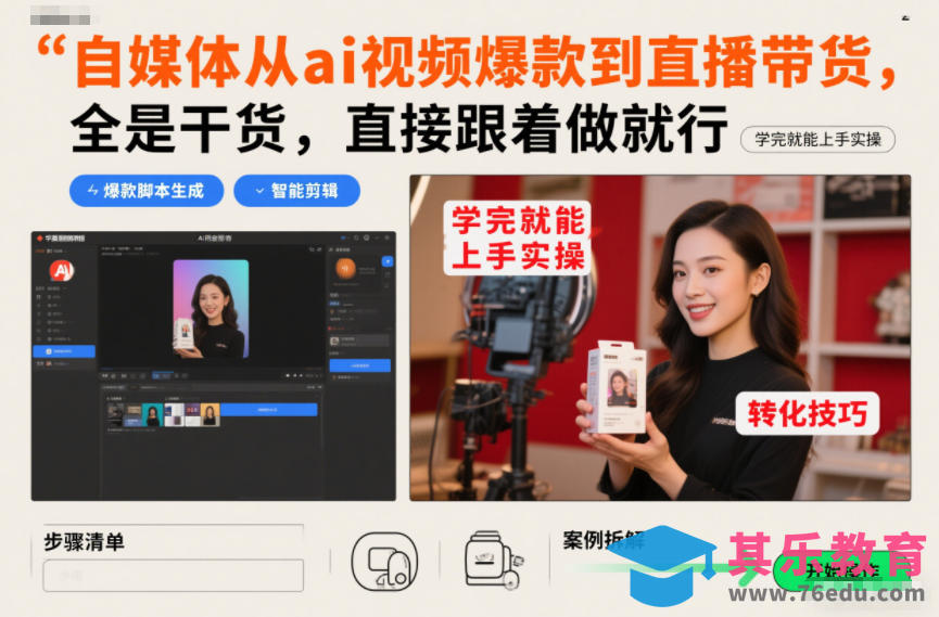从DeepSeek入门、AI爆款视频制作(像大唐公主、小人国这些),到剪映剪辑、账号运营、直播带货话术,最后连抖店开店、投流都手把手教。全是干货,直接跟着做就行,学完就能上手实操。