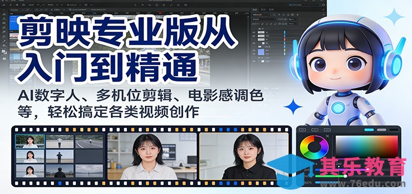 本套剪映专业版全流程剪辑课程,专为短视频创作者、剪辑新手打造,覆盖从基础入门到高阶创作的完整技能体系。课程从界面认知、全局设置、素材导入等基础操作切入,详解轨道用法、时间线操控、关键帧动画等核心剪辑技巧;系统教学蒙版、智能抠像、变速剪辑、多机位剪辑等实用功能,解锁 AI 数字人、音色克隆、智能字幕等 AI 工具应用。深度拆解电影感、黑金、复古等多风格调色流程,配套文字特效、创意转场、各类场景成片实战案例,助力学员快速掌握剪映专业版全功能,轻松产出高质量视频。