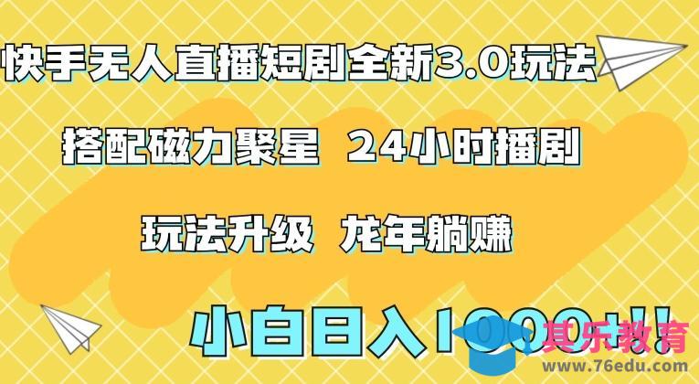 快手无人直播短剧全新玩法3.0,日入上千,小白一学就会,保姆式教学(附资料)【揭秘】