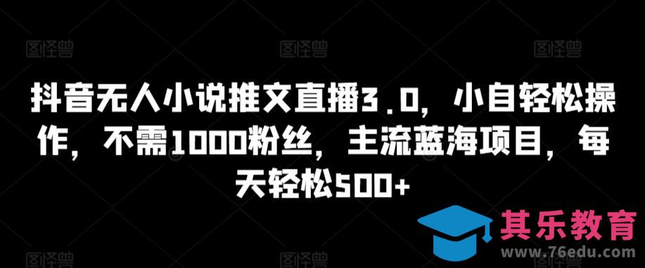 抖音无人小说推文直播3.0,小自轻松操作,不需1000粉丝,主流蓝海项目,每天轻松500 【揭秘】