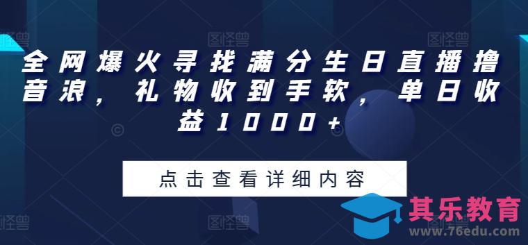 全网爆火寻找满分生日直播撸音浪,礼物收到手软,单日收益1000 【揭秘】