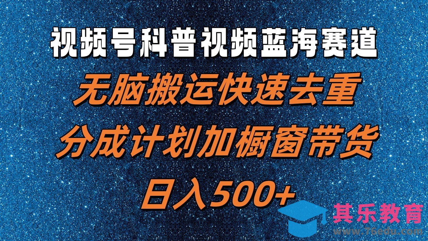 相对于搞笑、影视类的视频,科普视频现在做的人比较少,起号快,而且本项目去重操作简单,只需要无脑搬运就行。