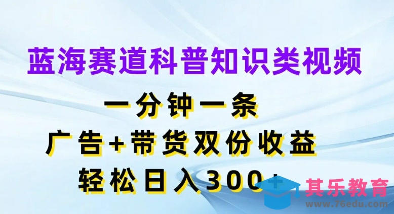 蓝海赛道科普知识类视频,一分钟一条,广告 带货双份收益,轻松日入300 【揭秘】