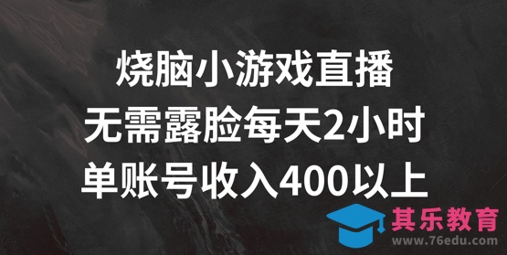 烧脑小游戏直播,无需露脸每天2小时,单账号日入400 【揭秘】