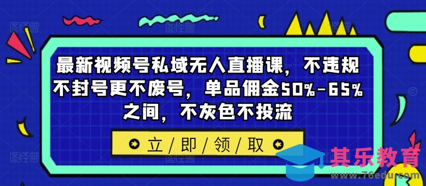 最新视频号私域无人直播课,不违规不封号更不废号,单品佣金50%-65%之间,不灰色不投流