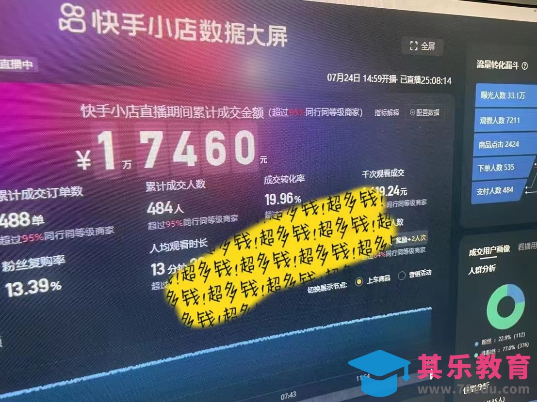 快手无人直播带货,利润靠带货出单的佣金,通常为30%佣金
