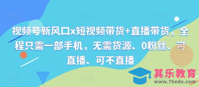 视频号新风口x短视频带货 直播带货,全程只需一部手机,无需货源、0粉丝、可直播、可不直播