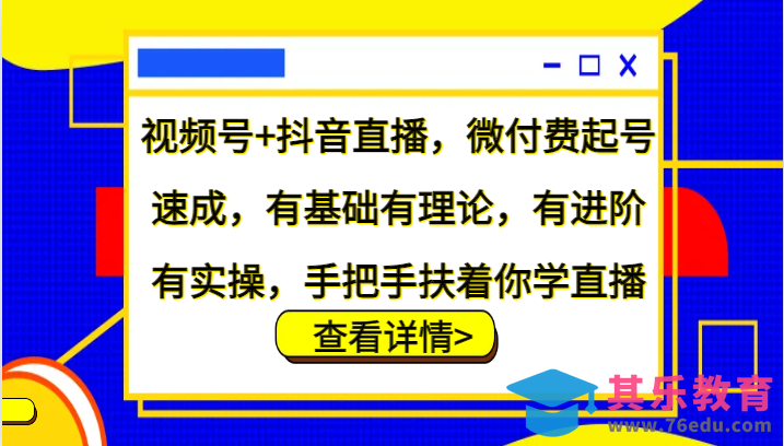 视频号直播 抖音直播。主要内容包括:小店随心推、千川打法、带货话术、下播复盘等。有基础有理论,有进阶有实操,手把手扶着你学直播。