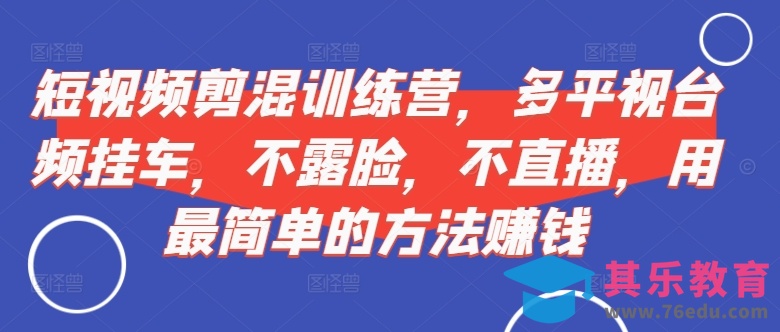 短视频剪混训练营,多平视台频挂车,不露脸,不直播,用最简单的方法赚钱