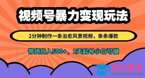 视频号暴力变现玩法,2分钟制作一条治愈风景视频,条条爆款,挂橱窗带货日入多张,2天起号小白可做