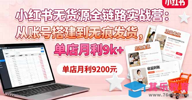 本课程为小红书无货源店铺实战课,聚焦“开店-选品-爆款”全链路体系,核心模块包括: