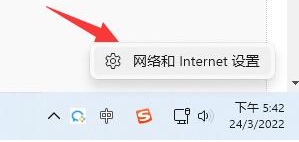 1、连接热点也无法使用的话,可以右键任务栏右下角的“网络图标”选择“网络和internet设置”。