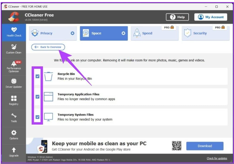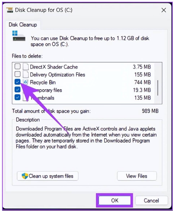 3、单击清理系统文件,选择必要的文件夹,然后确定。