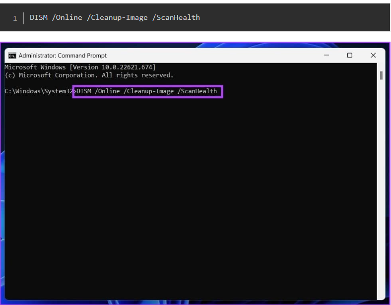 2、现在,在命令提示符中键入一下命令,扫描仪将清除所有错误并自行对它们进行分类。
