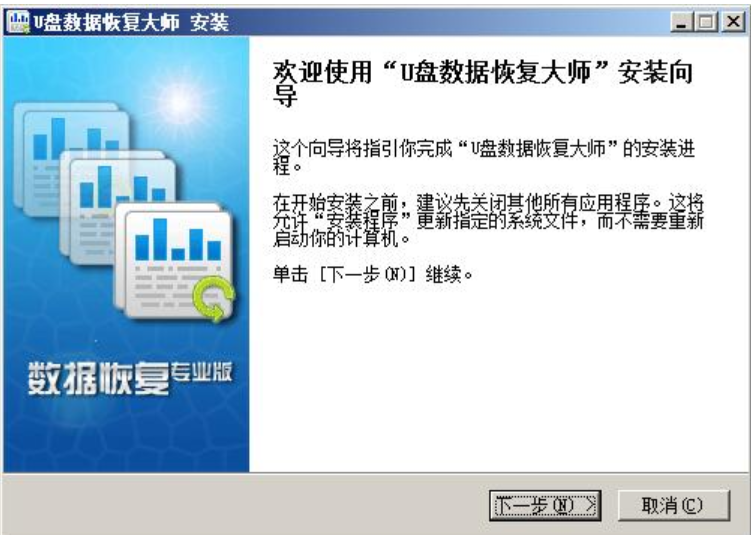 1、双击“UpanDataRecovery.exe”进入到软件安装向导。
